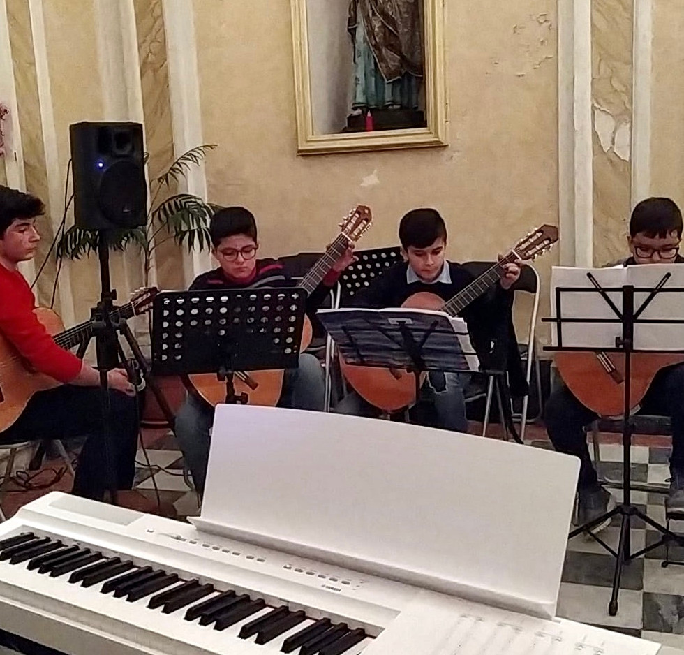 Quasi un mese è già passato dall’evento che ha reso protagonisti gli allievi delle classi di Chitarra e Pianoforte dei Maestri Carmela Gaudino e Giusy Alessi della Scuola di Musica Euphonia e si percepisce ancora nella deliziosa Chiesa di San Pietro e Paolo l’emozione e l’entusiasmo che Aurelia, Annalisa, Sofia, Emanuela, Giovanni, Cristiano, Diego, Leonardo, Marta e Dalia hanno condiviso col caloroso pubblico presente. L’evento ‘Aspettando Natale’, fortemente voluto dal nostro Presidente Mº Carmela Gaudino e supportato immancabilmente dall’Amministrazione Comunale presente in sala nelle sue massime cariche, è voluto essere il ringraziamento e il migliore augurio per le feste natalizie (allora imminenti) a tutti i genitori che hanno affidato alla competenza dei nostri Maestri l’educazione musicale dei loro figli, sottolineata in modo inequivocabile dalle deliziose esecuzioni che hanno riempito di armonie la fresca aria pomeridiana di Largo San Pietro.